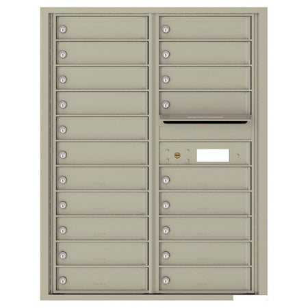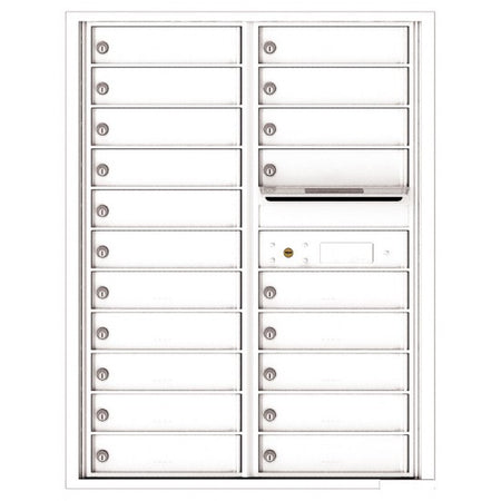 4C Mailbox with 20 tenant compartments and 1 outgoing mail compartment. 4C mailboxes are USPS Approved and meet or exceed STD-4C requirements for new construction and major renovations. They are also ideal for private delivery applications.