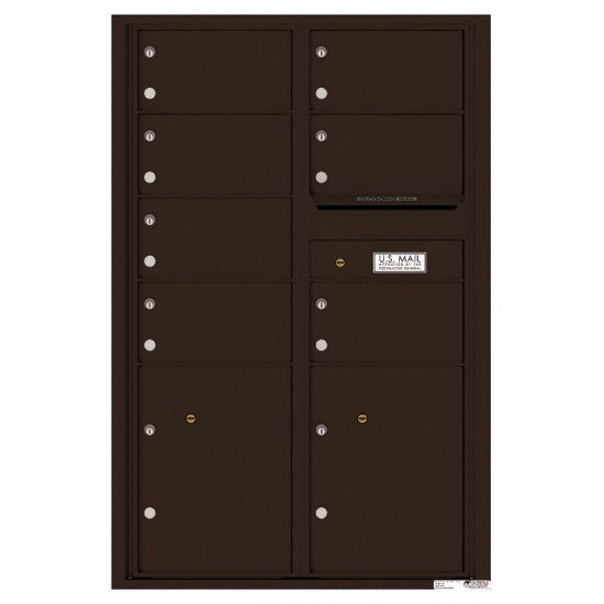 4C Mailbox with 7 over-sized tenant compartments, 2 parcel lockers, and 1 outgoing mail compartment. 4C mailboxes are USPS Approved and meet or exceed STD-4C requirements for new construction and major renovations. They are also ideal for private delivery applications.