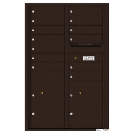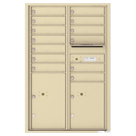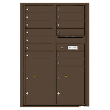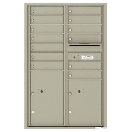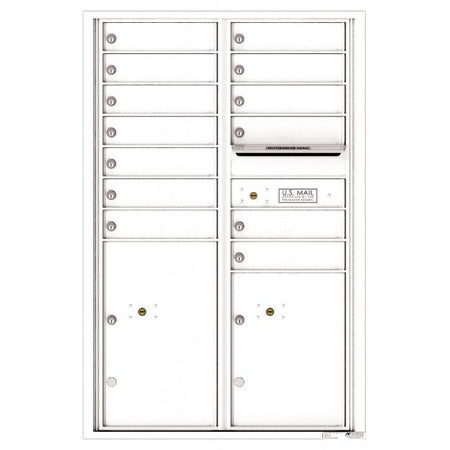4C Mailbox with 13 tenant compartments, 2 parcel lockers, and 1 outgoing mail compartment. 4C mailboxes are ideal for private delivery applications.