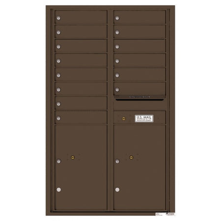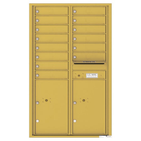 4C Mailbox with 14 tenant compartments, 2 parcel lockers, and 1 outgoing mail compartment. 4C mailboxes are USPS Approved and meet or exceed STD-4C requirements for new construction and major renovations. They are also ideal for private delivery applications.