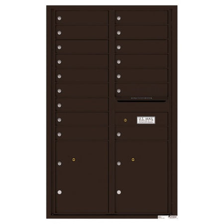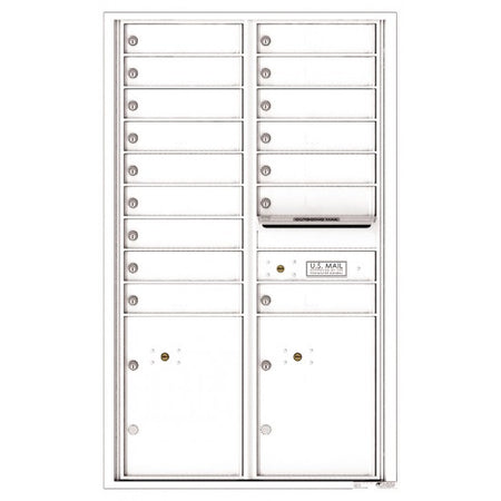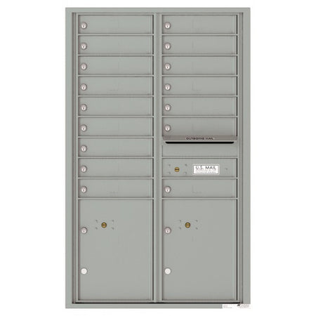 4C Mailbox with 16 tenant compartments, 2 parcel lockers, and 1 outgoing mail compartment. 4C mailboxes are USPS Approved and meet or exceed STD-4C requirements for new construction and major renovations. They are also ideal for private delivery applications.