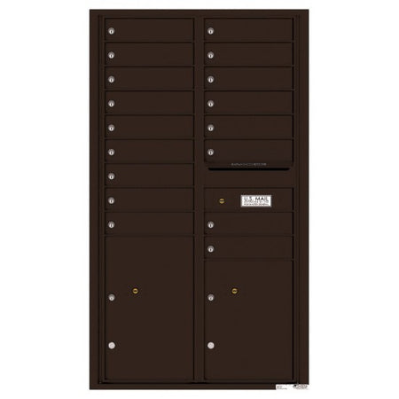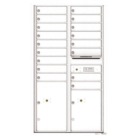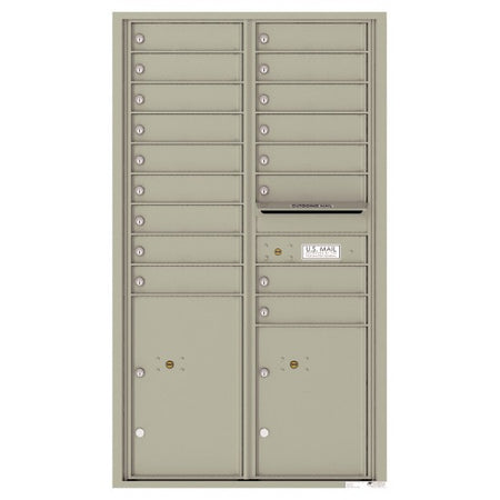 4C Mailbox with 17 tenant compartments, 2 parcel lockers, and 1 outgoing mail compartment. 4C mailboxes are USPS Approved and meet or exceed STD-4C requirements for new construction and major renovations. They are also ideal for private delivery applications.