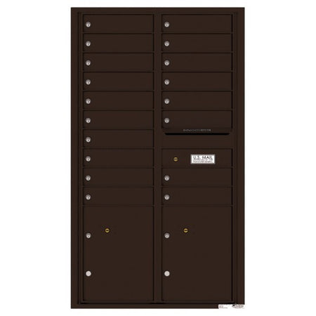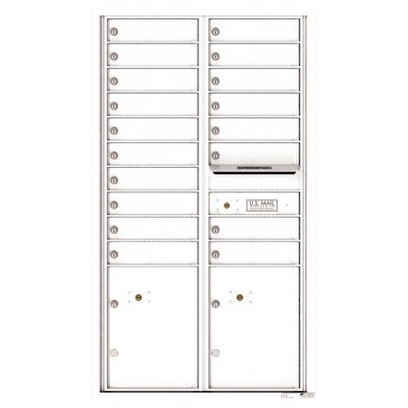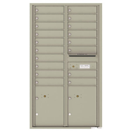 4C Mailbox with 18 tenant compartments, 2 parcel lockers, and 1 outgoing mail compartment. 4C mailboxes are USPS Approved and meet or exceed STD-4C requirements for new construction and major renovations. They are also ideal for private delivery applications.