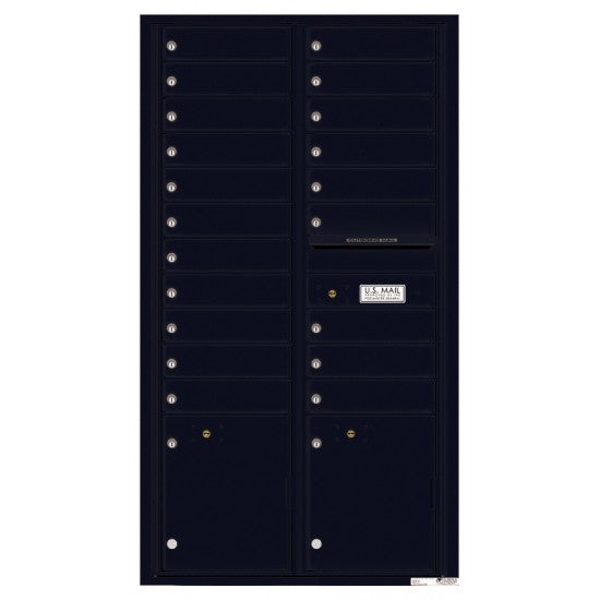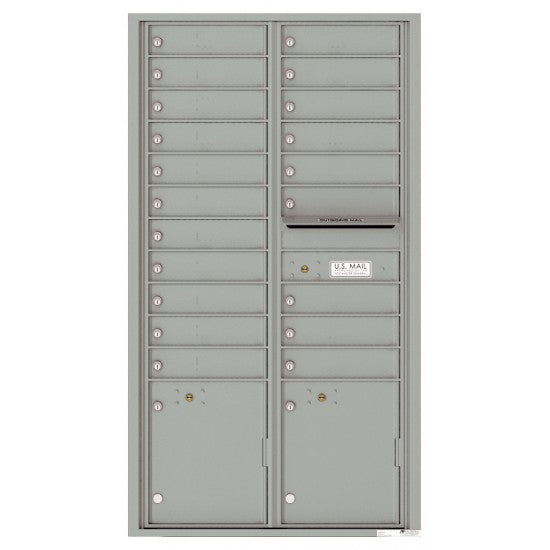 4C Mailbox with 20 tenant compartments, 2 parcel lockers, and 1 outgoing mail compartment. 4C mailboxes are USPS Approved and meet or exceed STD-4C requirements for new construction and major renovations. They are also ideal for private delivery applications.