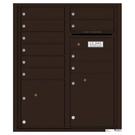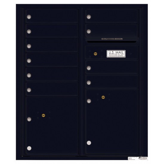 4C Mailbox with 10 tenant compartments, 2 parcel lockers, and 1 outgoing mail compartment. 4C mailboxes are USPS Approved and meet or exceed STD-4C requirements for new construction and major renovations. They are also ideal for private delivery applications.