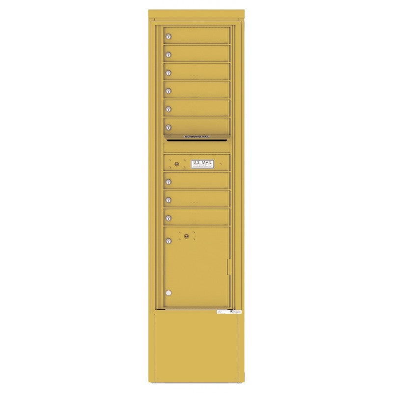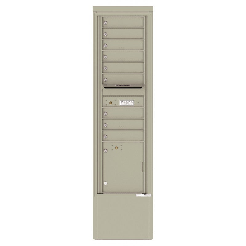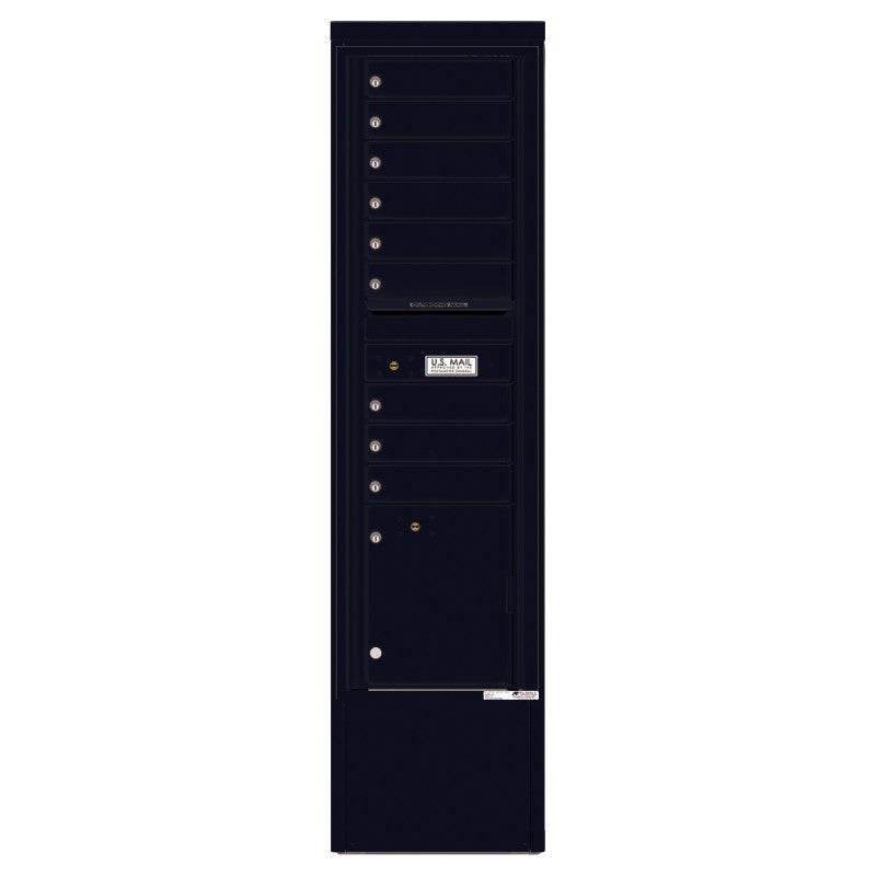 4C Mailbox with 9 tenant compartments, 1 parcel locker, and 1 outgoing mail compartment. The Depot is a freestanding solution that provides flexibility to install our most popular USPS Approved STD-4C wall-mounted mailboxes in a standalone cabinet. Depots are designed to ensure the selected module is installed at a standard accessible height. Ease of installation also makes the freestanding Depot option a popular choice.