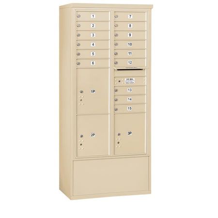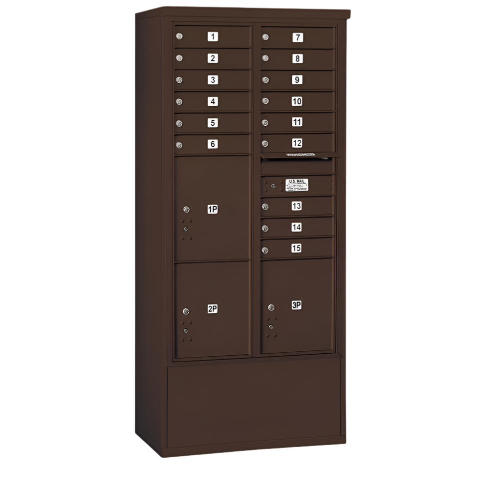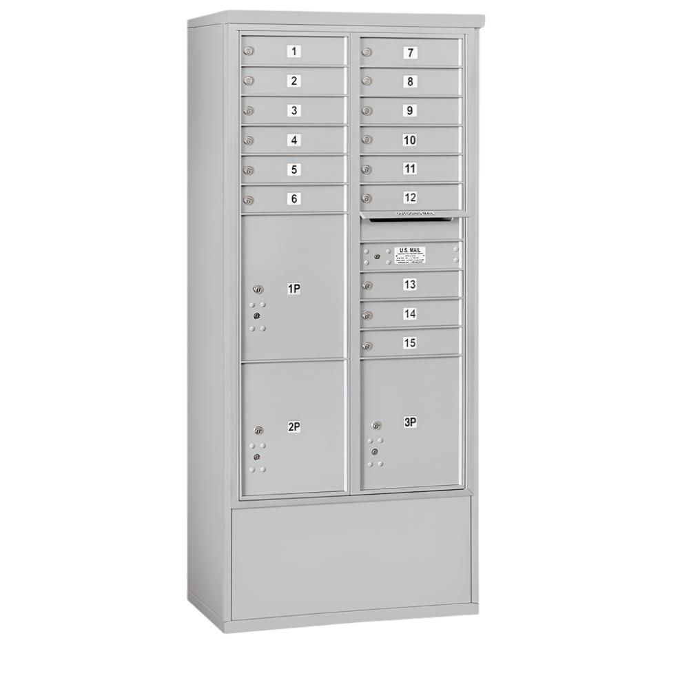 Salsbury 3916D-15 Maximum Height Free-Standing 4C Horizontal Mailbox with 15 Doors and 3 Parcel Lockers with USPS Access